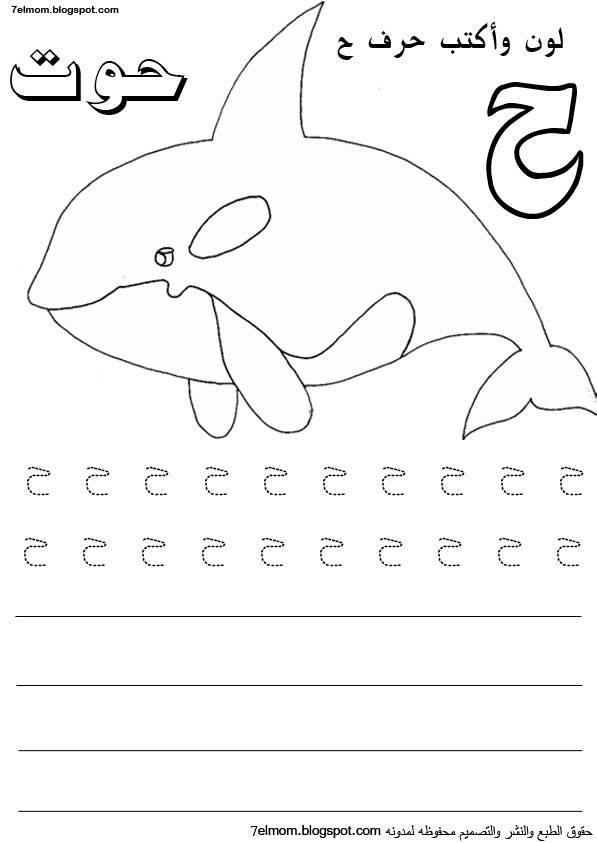 تلوين الحروف العربية حرف الحاء ح Tracing Letters Letter Tracing Worksheets Lettering Alphabet